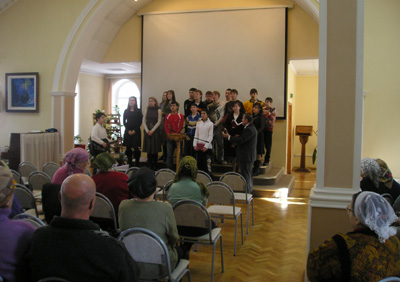 С интересом осматриваю Дом молитвы. Из окон слышны репетиции местного хора. "О церкви дорогой, собраньи душ живых", -- слышу гимн. Так уж повелось в нашей стране, что со зданиями баптистам всегда не везло. Когда евангельское движение только возникло, верующие были рады собираться где угодно, лишь бы вместе и во имя Христа. К тому же власти постоянно старались помешать собраниям, видя в них угрозу государству и православию. Поэтому Молитвенных домов мало, большинство -- это построенные в 90-е или переделанные из жилых и других зданий помещения (не говорю уж об обычной практике вынужденной аренды церковью домов культуры, кинотеатров или библиотек). Странно даже слышать аргумент "державников"-православных о том, что раз в России полным-полно только их храмов, в том числе и в Кремле, то это и значит, что они единственные хозяева духовной жизни наших граждан. Но, помилуйте, откуда же взяться баптистским храмам на Руси, ежели баптисты никогда не были государственной церковью, почти не жили в условиях свободы совести и отсутствии гонений, когда не только что-то построить было запрещено, а и вообще собраться вместе?