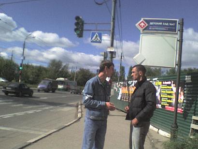 Пришёл я заранее, ещё было полвторого, увидев похожего мужчину я на всякий случай его сфотографировал, соответственно ,когда он этого не видел. Через несколько минут к нему подошёл мужчина лет 30 в джинсовом костюме, и стал у него просить деньги как видимо на пиво, их разговор: давно тут,- ответ да давно, где вы:- за забором. Я понимал что у них должна быть машина, тем более они и обещали приехать за дочерью на машине. Я сфотографировал их обоих.