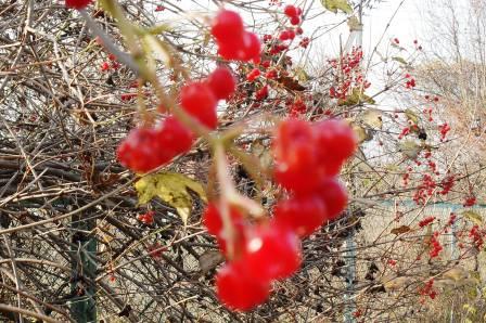 Словно застывшие капельки крови повисли в воздухе ягодки калины.